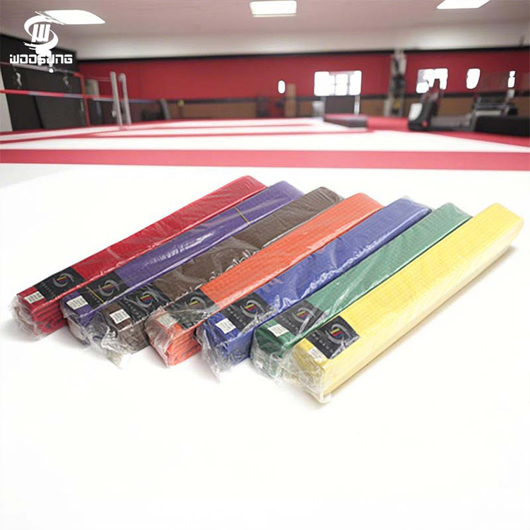 Les ceintures de karaté WOOSUNG, en tant que symbole d'identité et marque de progrès pour les pratiquants d'arts martiaux, sont notre produit principal, construit sur plus de 20 ans d'expérience dans la fabrication d'équipements d'arts martiaux. Nous utilisons des matériaux de haute qualité tels que des mélanges de pur coton et de polyester de grande qualité, combinés à un tissage de précision et à des processus de teinture respectueux de l'environnement, pour créer des ceintures de qualité professionnelle avec une excellente durabilité et résistance à l'usure, couvrant tous les rangs, de la ceinture blanche à la ceinture noire.