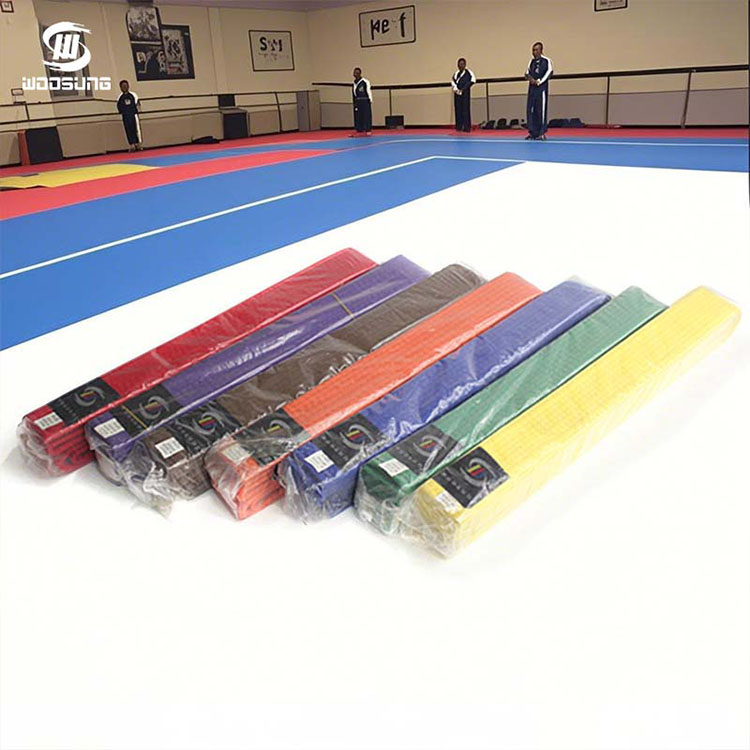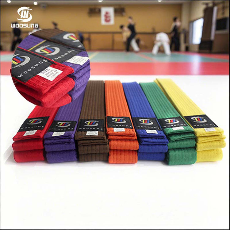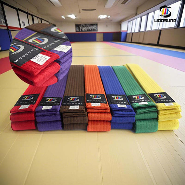 L'évolution des couleurs des ceintures de karaté est le reflet direct de l'habileté et de la croissance mentale du pratiquant. Les ceintures de karaté WOOSUNG adhèrent strictement aux traditions des arts martiaux, offrant une gamme complète d'options de couleurs pour tous les rangs : les ceintures blanches symbolisent le début et un nouveau départ, représentant l'humilité et la soif de connaissances des débutants ; les couleurs intermédiaires telles que le jaune, l'orange, le vert et le bleu correspondent à la maîtrise des techniques de base par le pratiquant et à l'approfondissement de sa compréhension des principes des arts martiaux ; les ceintures marron signifient la maturité et la stabilité des compétences, une étape cruciale vers des niveaux supérieurs ; et les ceintures noires représentent la transcendance et l'héritage, signifiant que le pratiquant a maîtrisé les techniques de base et s'est lancé dans un nouveau voyage d'exploration de l'essence des arts martiaux. Pour les dojos ayant des exigences de couleurs personnalisées, nous pouvons également personnaliser des styles spéciaux tels que des ceintures bicolores ou rayées, en respectant les traditions des différentes écoles d'arts martiaux.