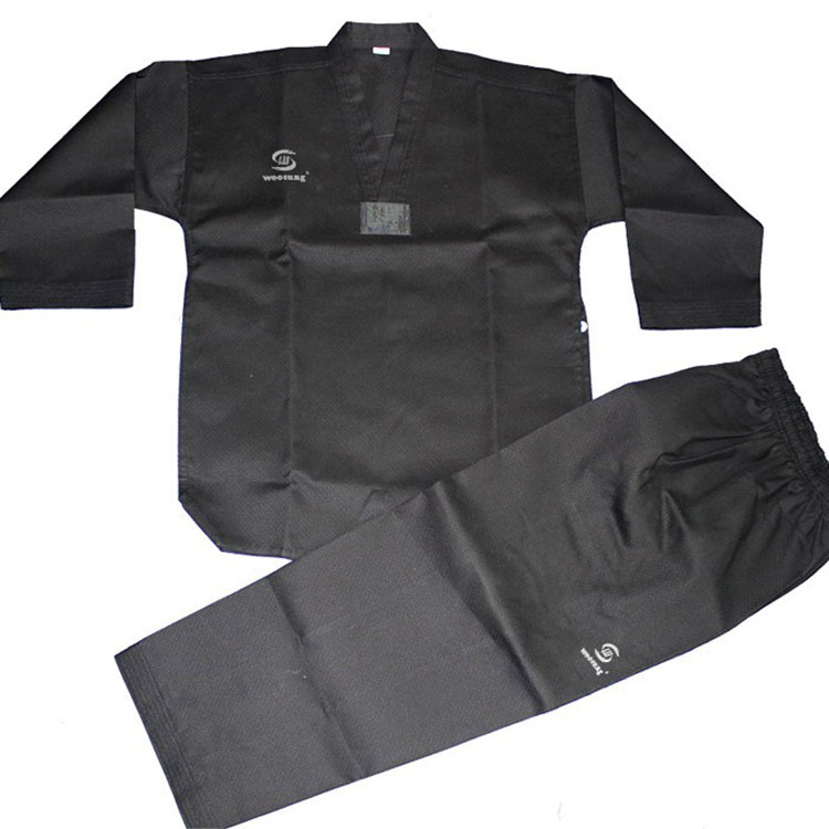 L'uniforme de taekwondo noir WOOSUNG incarne le charme unique du taekwondo en noir classique. En tant qu'usine d'uniformes de Taekwondo en Chine, nous sommes spécialisés dans la fourniture de solutions vestimentaires de haute qualité pour l'entraînement, le combat et les performances.
