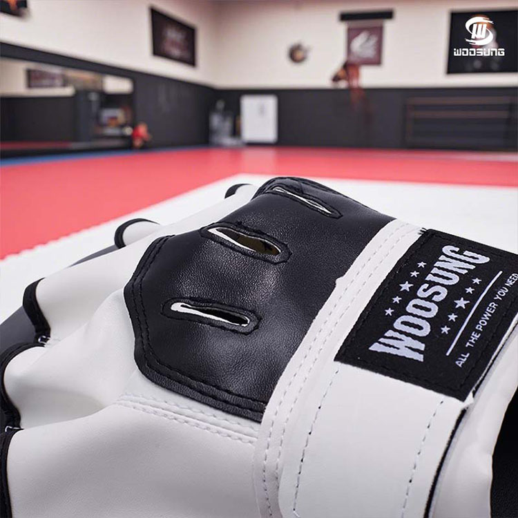 Ajustement : Lors de la frappe, la personne qui tient le gant doit garder son coude légèrement plié, en utilisant la surface incurvée du gant WOOSUNG pour faire face à la force entrante.