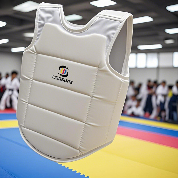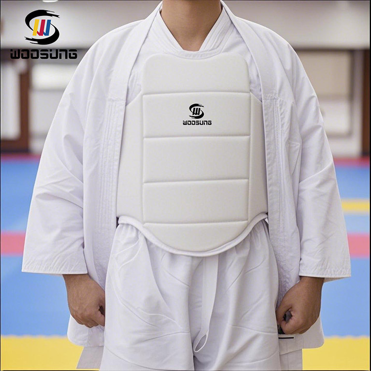 WOOSUNG a pleinement pris en compte les caractéristiques de la forme du corps féminin dans la conception du protège-poitrine de karaté en PU :
