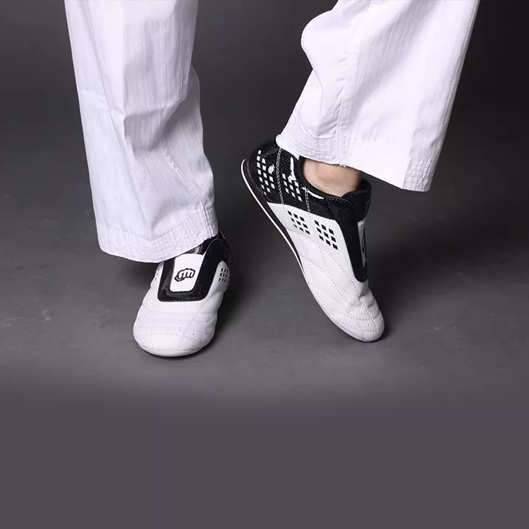 La semelle utilise un matériau en caoutchouc antidérapant et résistant à l'usure, combiné à un motif de bande de roulement optimisé pour les mouvements de Taekwondo, garantissant une adhérence stable sur les surfaces courantes telles que les planchers en bois et les tapis d'entraînement.