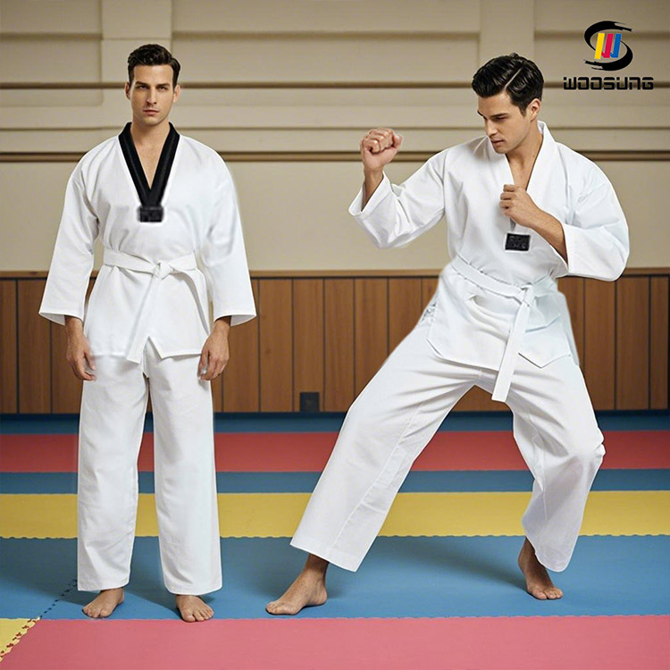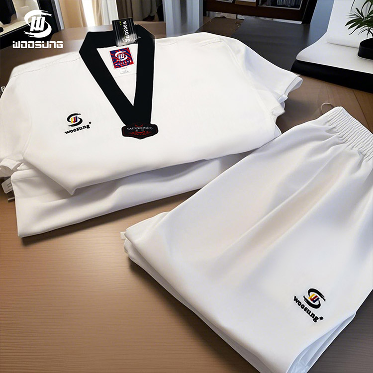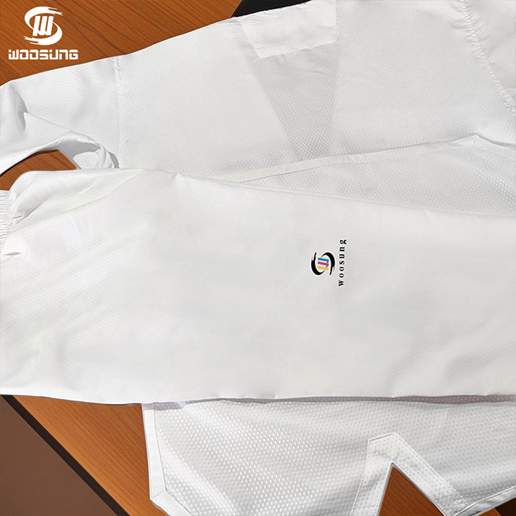 L'uniforme de taekwondo WOOSUNG avec maille (fabricant/fournisseur chinois) est un uniforme de haute performance conçu spécifiquement pour les environnements d'entraînement professionnel et de compétition. En incorporant des panneaux en mesh hautement respirants dans les zones clés, combinés à un tissu mélangé coton-polyester et une coupe athlétique, cet uniforme atteint un équilibre supérieur entre confort, capacité d'évacuation de l'humidité et durabilité.